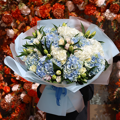 Букет "Елизавета " из гортензий, роз и пионовидных ароматных лилий